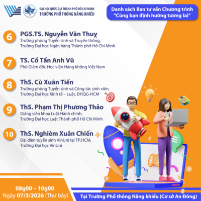 • Chương trình “Cùng bạn định hướng tương lai” với Chủ đề: Giải mã kỳ thi Đánh giá năng lực của ĐHQG-HCM (V-ACT, năm 2026)